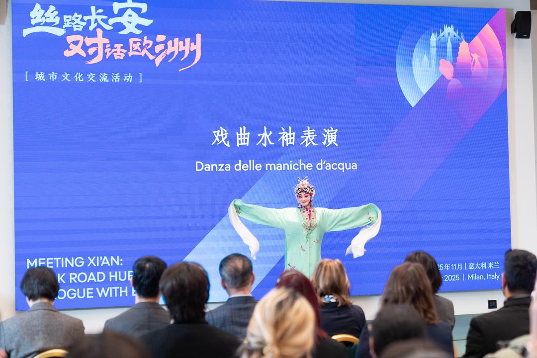 图为在“丝路长安·对话欧洲”城市文化交流活动启动仪式暨西安城市推介会,演员在表演戏曲水袖。主办方供图