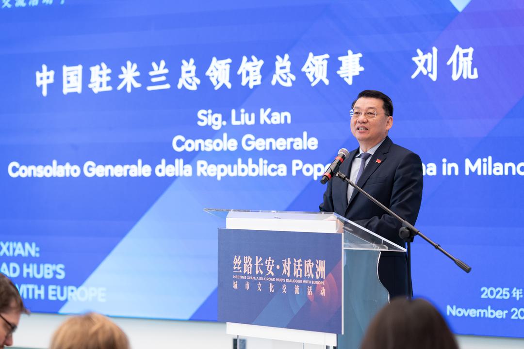 中国驻米兰总领事刘侃在致辞中表示,西安作为古代丝绸之路的起点,是中华文明最重要的发源地之一。西安见证了不同文明在古丝路上的相遇、交融与共同繁荣。他期待未来中欧城市之间能够在文化遗产保护、城市更新、产业创新、青年交流等领域探索更多合作机遇。
