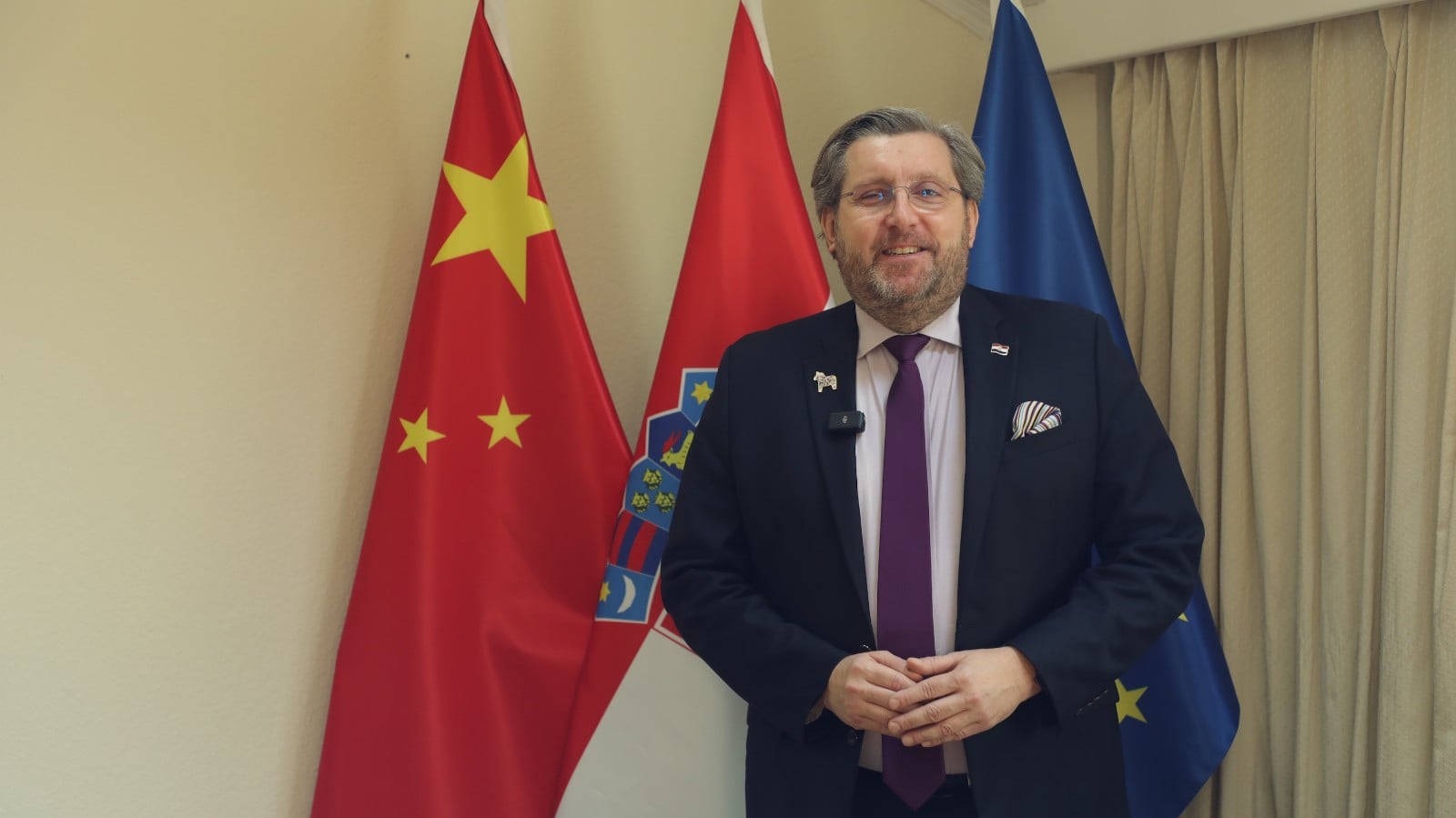 克罗地亚驻华大使达里欧·米海林近照。(海外网 王陈逍遥 摄)