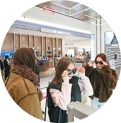 不久前,天津首家市内免税店开业。门店分设免税商品区域和有税商品区域。图为外籍顾客选购商品。