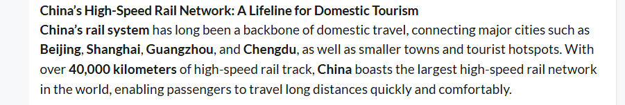 《南华早报》报道截图高铁网络是旅游业生命线美国《旅行和旅游世界》网站刊文指出,随着国庆假期的到来,中国国内旅游出现了历史...