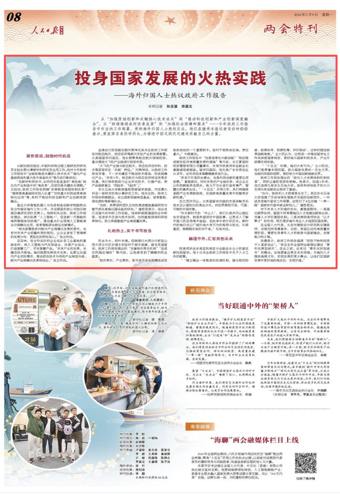 从“加强原始创新和关键核心技术攻关”到“推动科技创新和产业创新深度融合”,从“持续推进农村改革发展”到“加强社会保障和服务”……今年政府工作报告中作出的工作部署,受到海外归国人士热切关注。他们在接受本报记者采访时纷纷表示,要发挥自身所学所长,为推进中国式现代化建设贡献自己的力量。