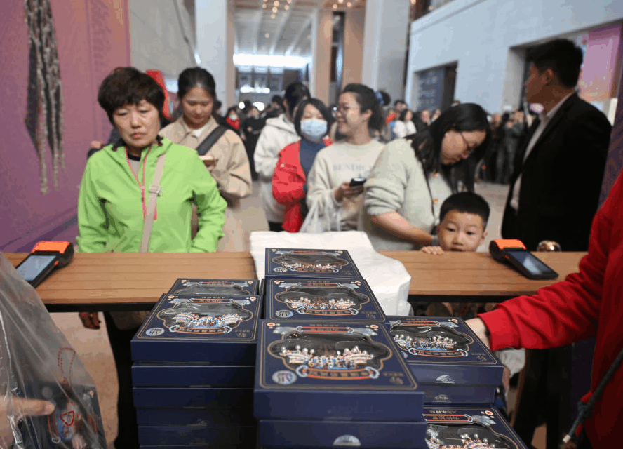 3月25日,观众在北京中国国家博物馆排队购买凤冠冰箱贴。新华社记者 金良快 摄