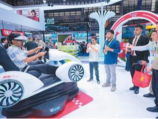 巴基斯坦参展商沉浸式体验VR智能赛车。
