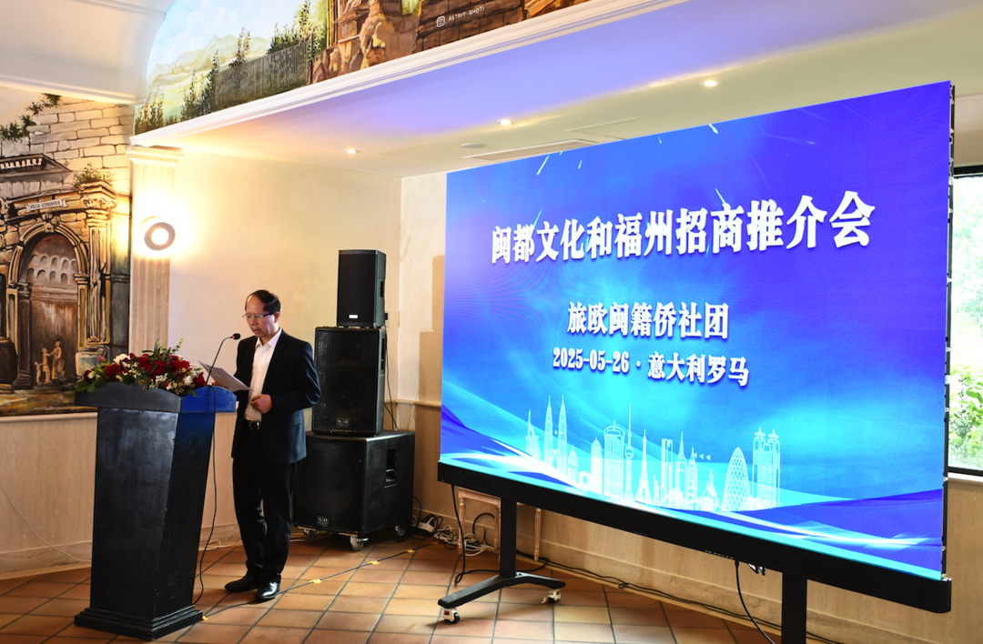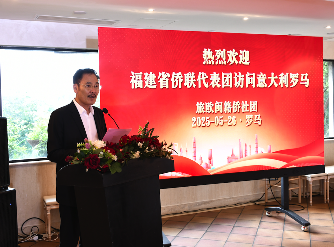 旅欧闽籍知名侨领、欧洲华侨华人社团联合会副主席胡建兵先生致欢迎词。他说,我们这些漂泊在欧洲的闽籍侨胞,始终铭记着家乡的嘱托,践行着福建人“爱拼会赢”的精神。在海外,我们始终心系祖国,积极传播中华优秀文化。组织各类文化交流活动,让欧洲民众更深入地了解中国的传统节日、民间艺术和悠久历史,增进彼此的文化认同和友谊。在祖国需要的时候,我们也毫不犹豫地伸出援手。无论是国内的自然灾害,还是抗击疫情期间,欧洲闽籍侨团纷纷捐款捐物,为家乡和祖国贡献自己的力量。今天,陈武海主席一行亲临罗马,不仅为我们带来了家乡的最新动态与关怀,更为我们搭建起深度交流的桥梁。