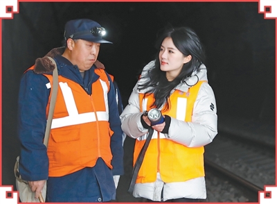 人民日报山西分社记者马睿姗(右)在采访桥隧工。