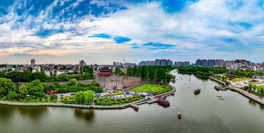 市民游客登上荆州古城,感受古城文化魅力。(张梦瑶 摄)