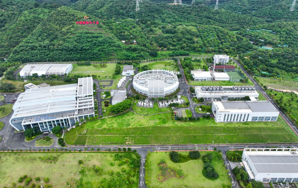 这是在广东东莞拍摄的中国散裂中子源(2024年7月8日摄,无人机照片)。在粤港澳大湾区多地,一系列在建和已启用的大科学装置集群效应初现,助力大湾区加速迈向国际科技创新中心。新华社记者 毛思倩 摄