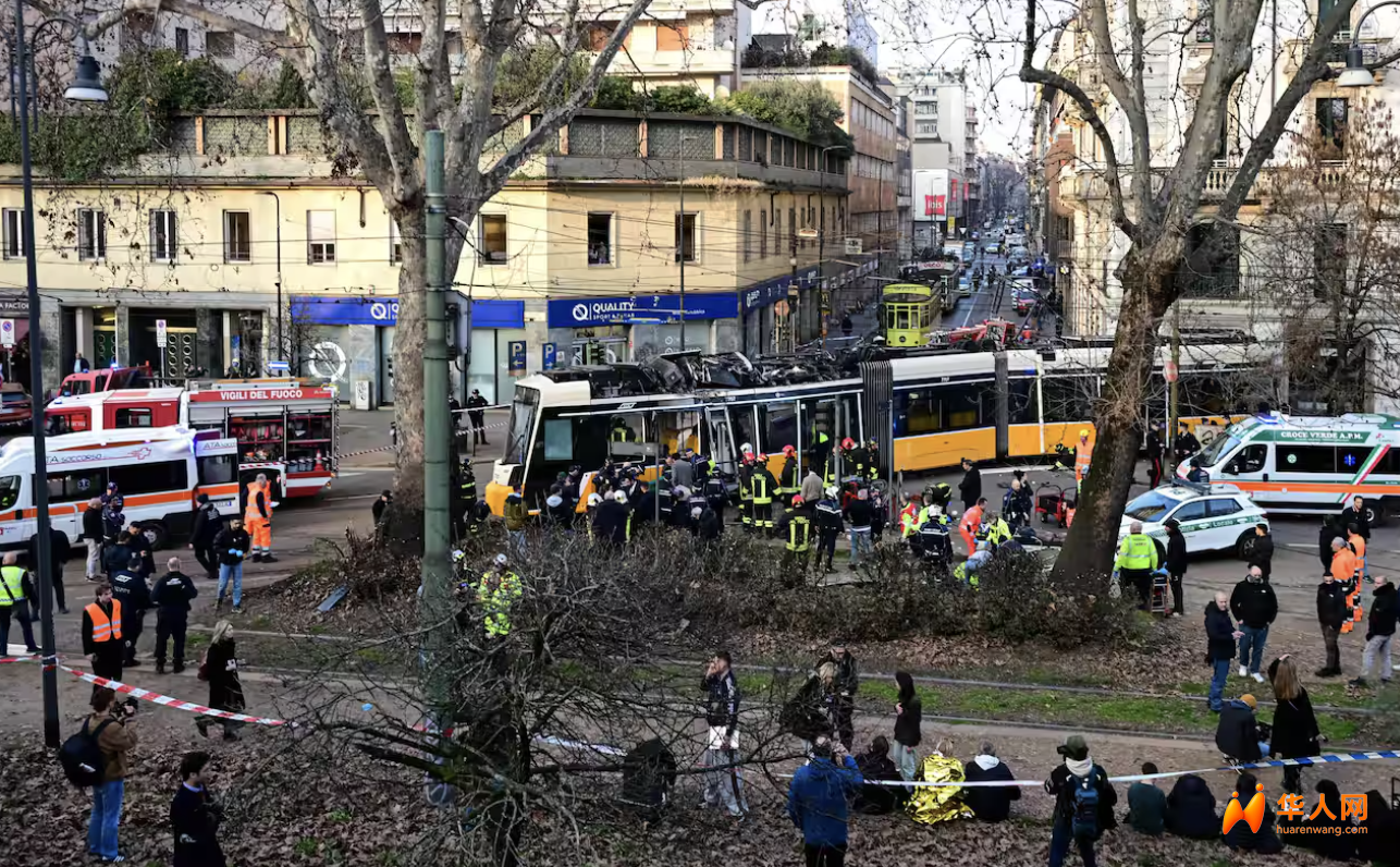 意大利华人网2026年2月28日消息:2月27日下午,米兰市中心发生一起严重交通事故。一列9路有轨电车在行驶过程中突然脱轨,冲出轨道后撞向路边建筑,造成两人死亡,多人受伤。事故发生在维托里奥·维内托大道与拉扎雷托街交叉口一带,现场一度陷入混乱。