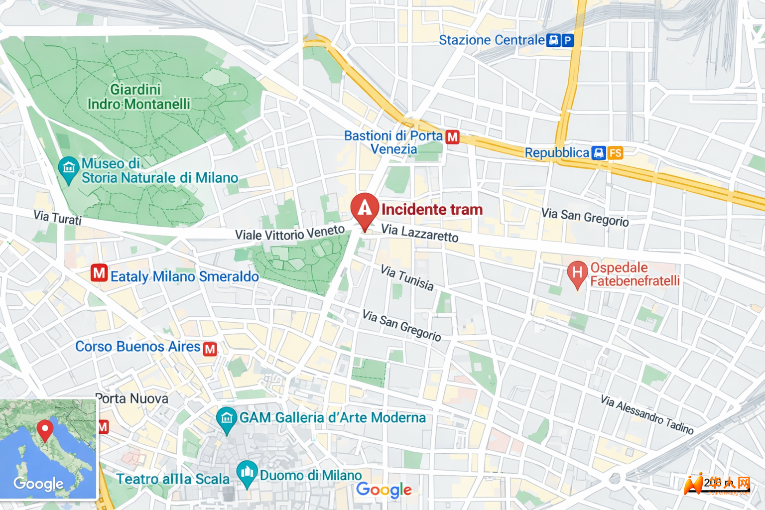 意大利华人网2026年2月28日消息:2月27日下午,米兰市中心发生一起严重交通事故。一列9路有轨电车在行驶过程中突然脱轨,冲出轨道后撞向路边建筑,造成两人死亡,多人受伤。事故发生在维托里奥·维内托大道与拉扎雷托街交叉口一带,现场一度陷入混乱。