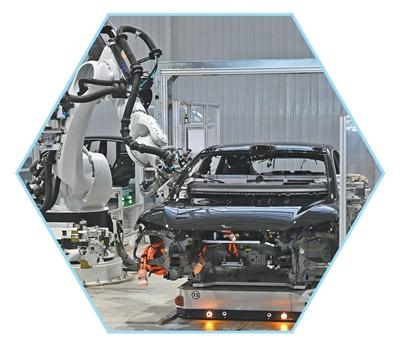 位于安徽合肥市新桥智能电动汽车产业园的蔚来第二工厂新能源汽车生产线。