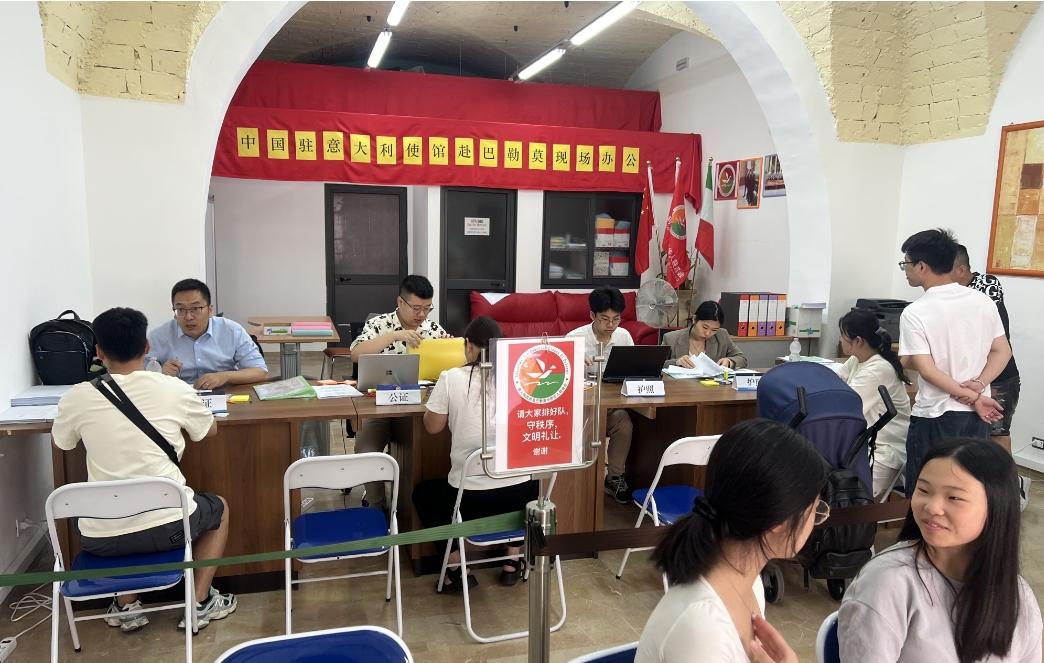 意大利华人网消息(记者 孙玮):意大利西西里巴勒莫远离亚平宁半岛出行不方便,但是在此生活着很多华侨。为更好践行“外交为民”宗旨,将领事服务送到“家门口”,惠及更多领区同胞,切实为领区侨民提供便利,当地时间7月5日,中国驻意大利大使馆领侨处主任牟俊宏携李李冰清领事,焦炻榭领事,徐于晴工作人员赴西西里巴勒莫现场办公,为当地华侨解决实际困难,这是中国驻意大利大使馆系列现场办公之一。