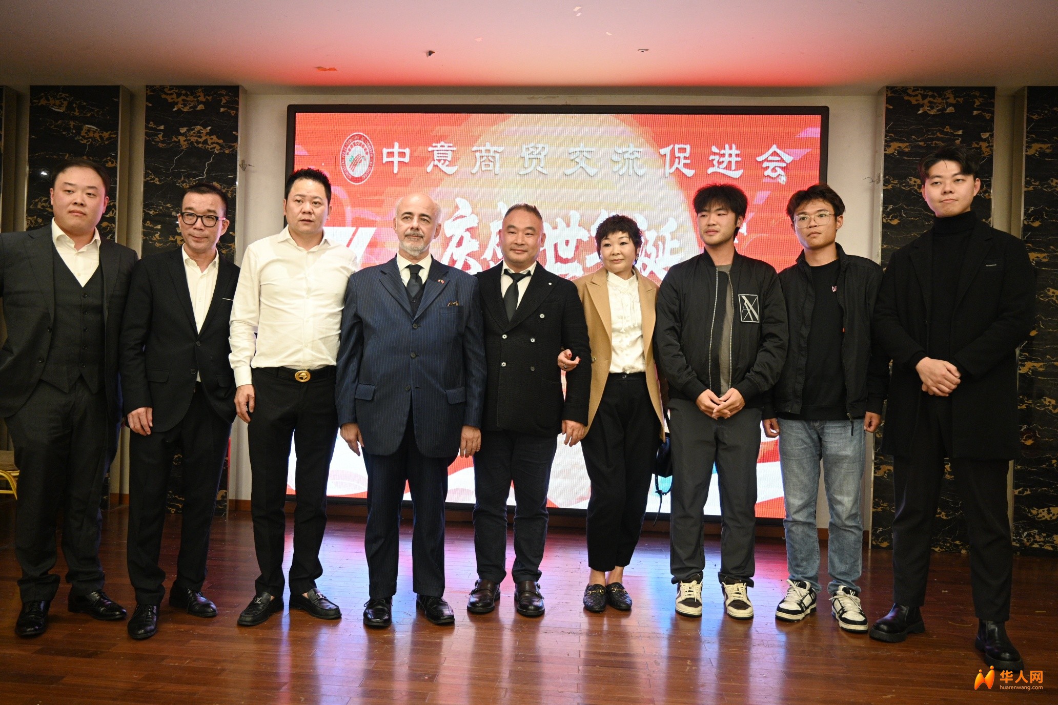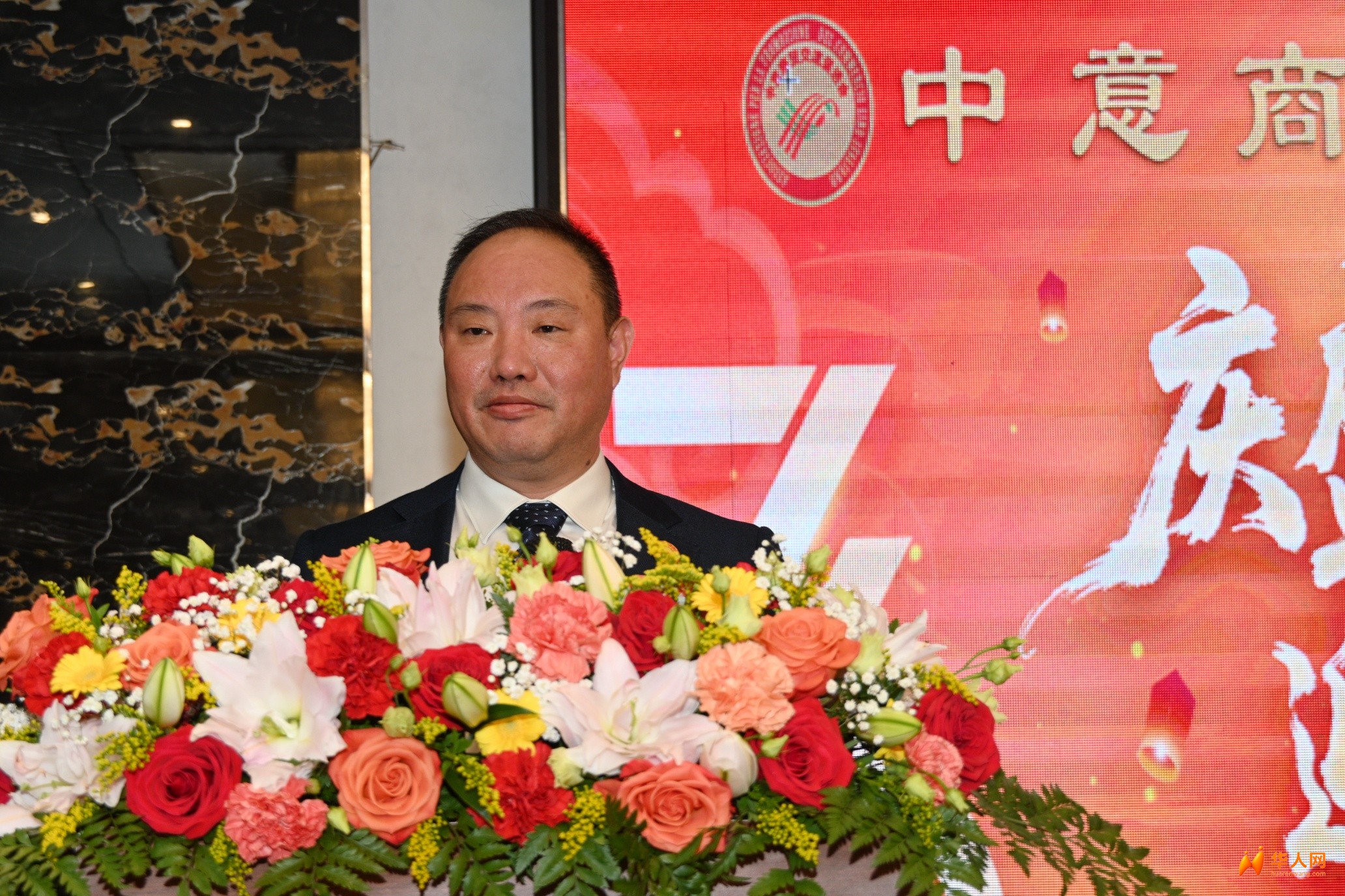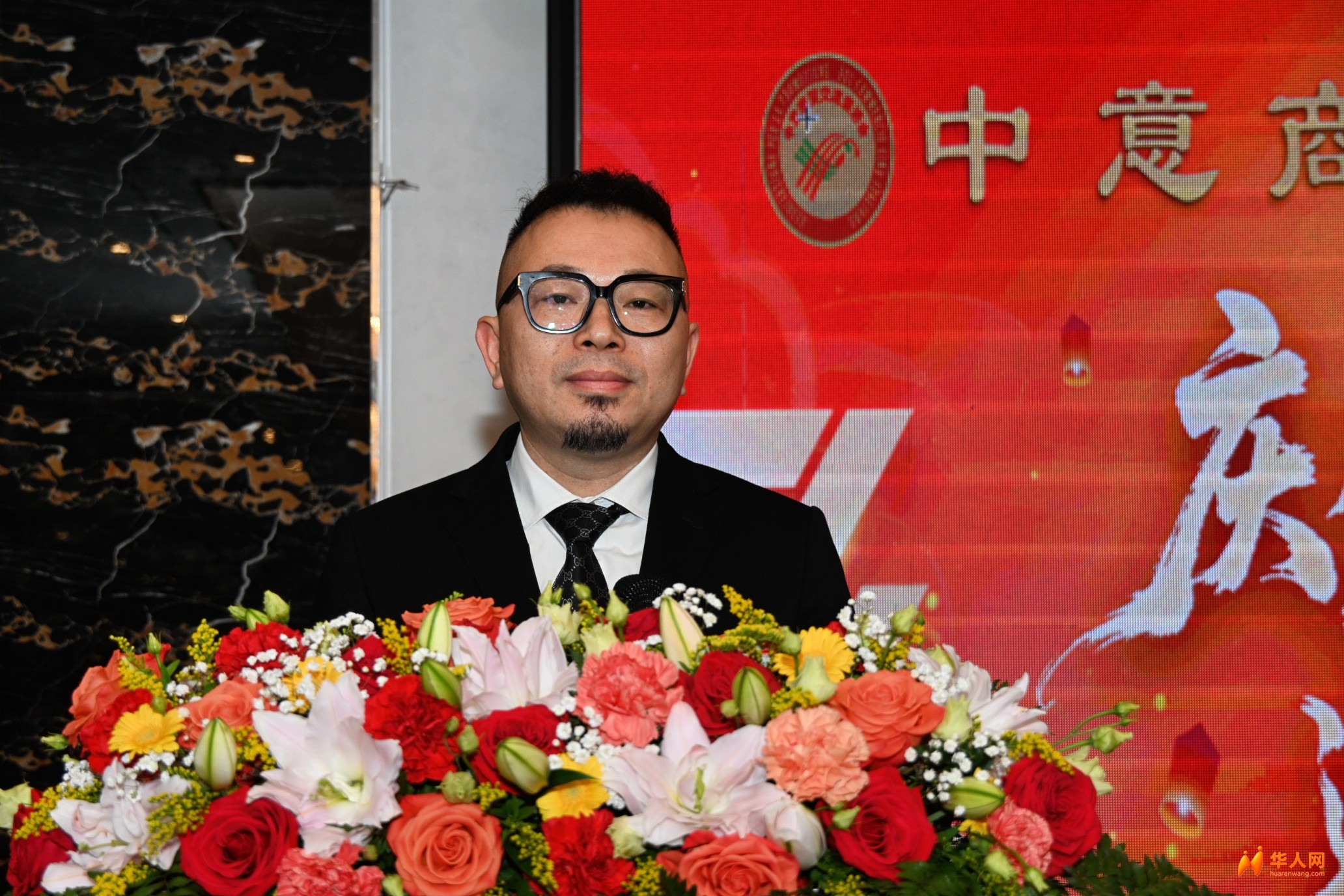 意大利友人Stefano Di Martino先生也受邀登台致词,他盛赞华人企业家勤奋、坚韧、富有远见,并表示愿与中意商贸交流促进会保持密切合作,共同推动中意企业间的务实合作与友谊发展。