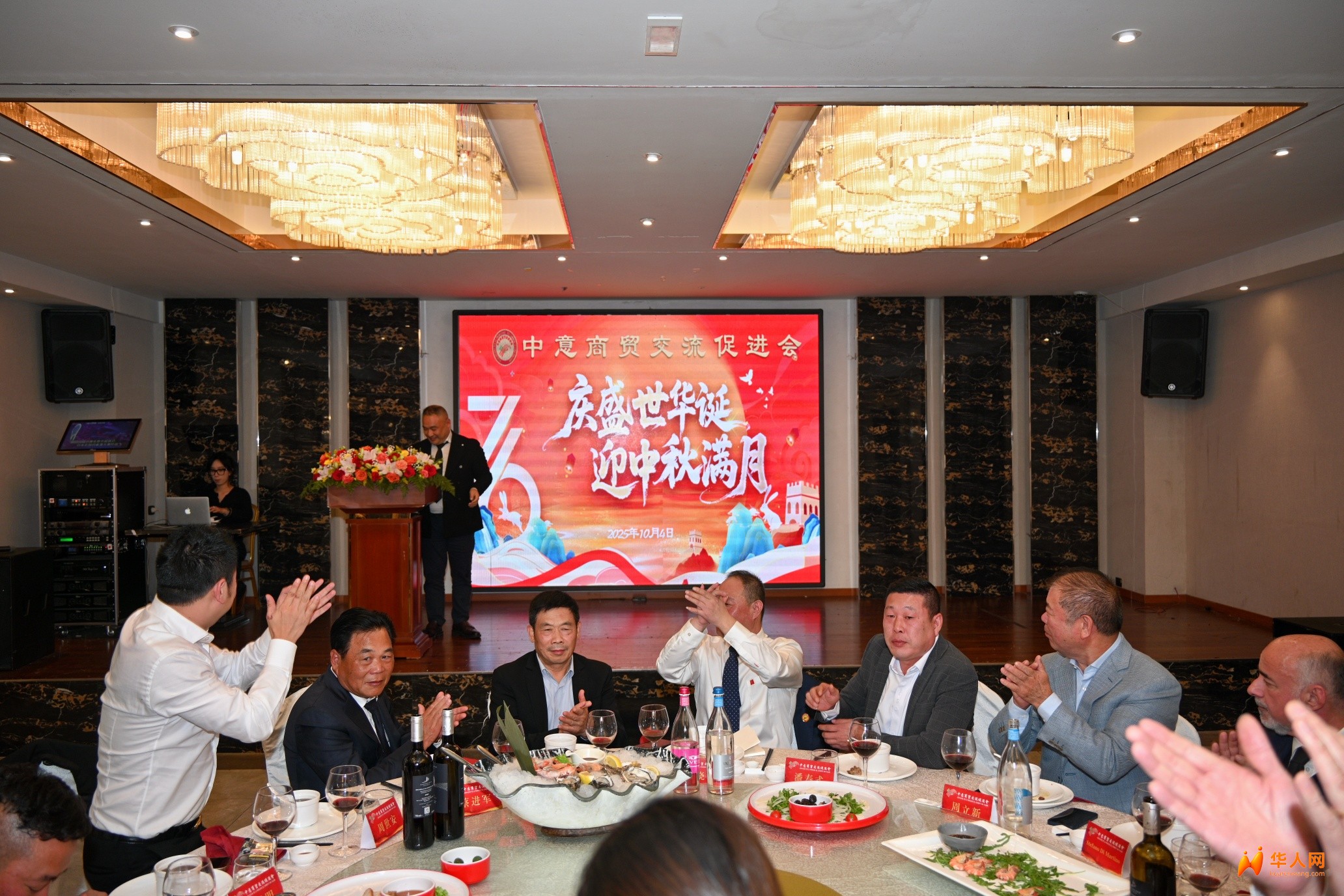 意大利华人网2025年10月5日编译消息:10月4日晚,中意商贸交流促进会在米兰168大酒店隆重举办2025中秋晚宴。来自米兰侨界的多位侨领、企业家及社会各界嘉宾齐聚一堂,共庆中秋佳节,共话中意友谊。