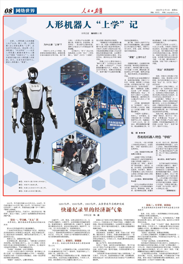 当前,人形机器人正加速融入生产生活。跟人一样,人形机器人在上岗前也要先“上学”。在北京市石景山区,有这样一所人形机器人“专业学校”——北京人形机器人数据训练中心二期(以下简称“训练中心”),这是目前国内最大的人形机器人训练场。近日,记者走进训练中心,探访人形机器人“课堂”。