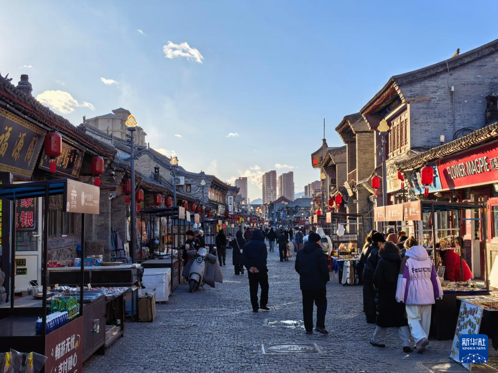 2月1日,市民游客在呼和浩特市玉泉区塞上老街游览。新华社记者王雪冰 摄