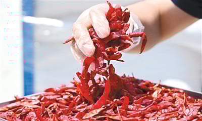卢旺达是首个向中国出口干辣椒的非洲国家。图为在山东青岛西海岸新区中青大冷仓库拍摄的卢旺达干辣椒。新华社记者 李紫恒摄