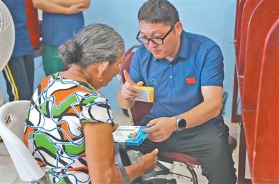 中国援圭亚那医疗队队员为当地村民看诊后,介绍药物用法。本报记者 时元皓摄