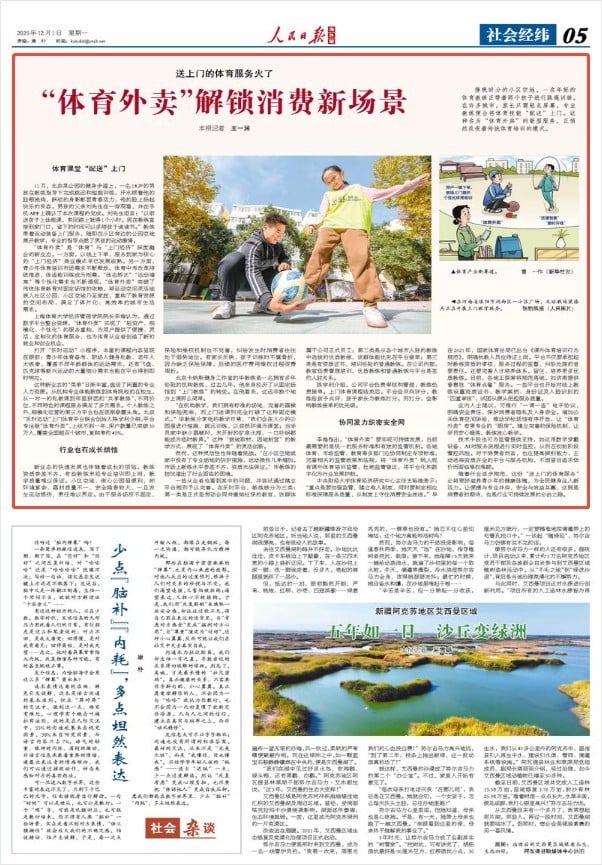 随着行业逐步规范,这份“送上门的体育服务”必将更好滋养青少年的健康体魄,为全民健身注入新活力。让便捷与专业并存,安全与效益共赢,这既是消费者的期待,也是行业可持续发展的必由之路。(本报记者 王一涵)