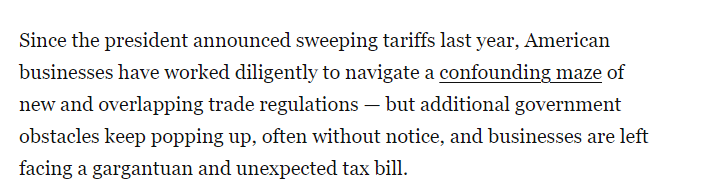 同一天,美国《华盛顿邮报》发表文章称,美国的关税政策是政府的一场大混乱。文章说自美国政府去年宣布全面征收关税以来,美国企业一直在努力应对错综复杂、且相互重叠的贸易法规。政府方面不断出台新的政策,而且往往毫无预警,导致企业面临巨额且意想不到的税单。