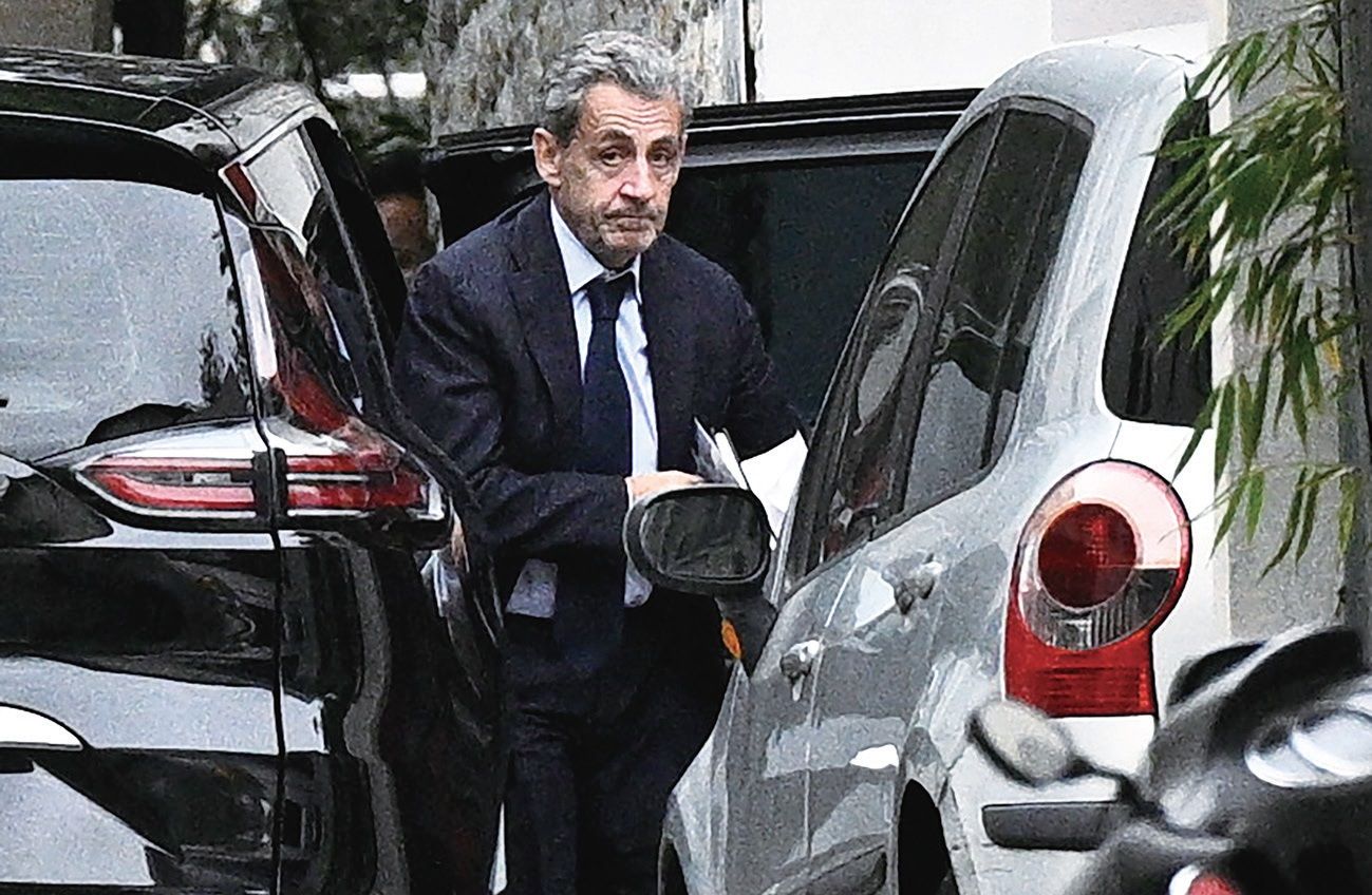 图为10月13日,萨科奇结束与检察官的会面后返回巴黎住所。法新社图