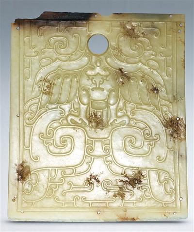 石峁遗址出土的鹰纹玉钺(正面)。国家文物局供图