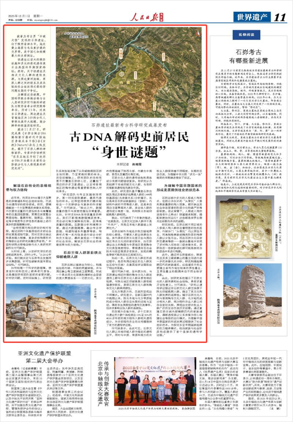 就在11月27日,研究成果《石峁古城古DNA揭秘新石器时代中国地区亲缘关系习俗》在《自然》(Nature)杂志上线发表,揭开了石峁人群的神秘面纱。专家评价该研究“在东亚地区开创了运用古DNA方法揭示史前社会阶级分化与人祭现象的研究先河”。