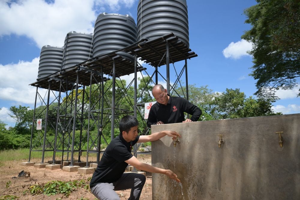 1月26日,在津巴布韦中马绍纳兰省沙姆瓦地区津迪村,中国援津第四期高级农业专家组专家在一处储水点检查水龙头。