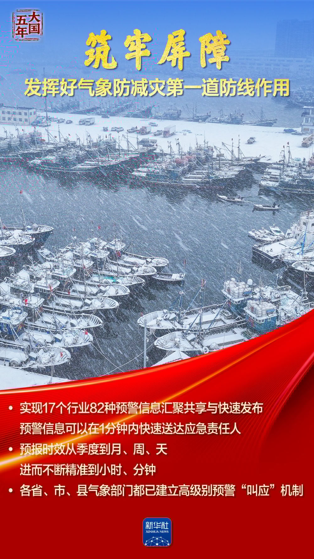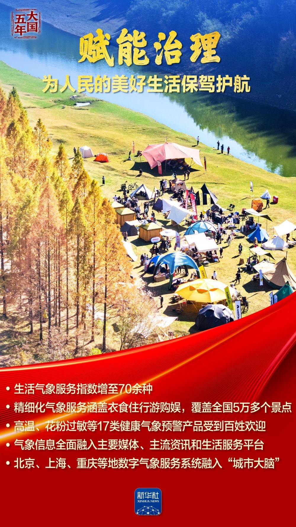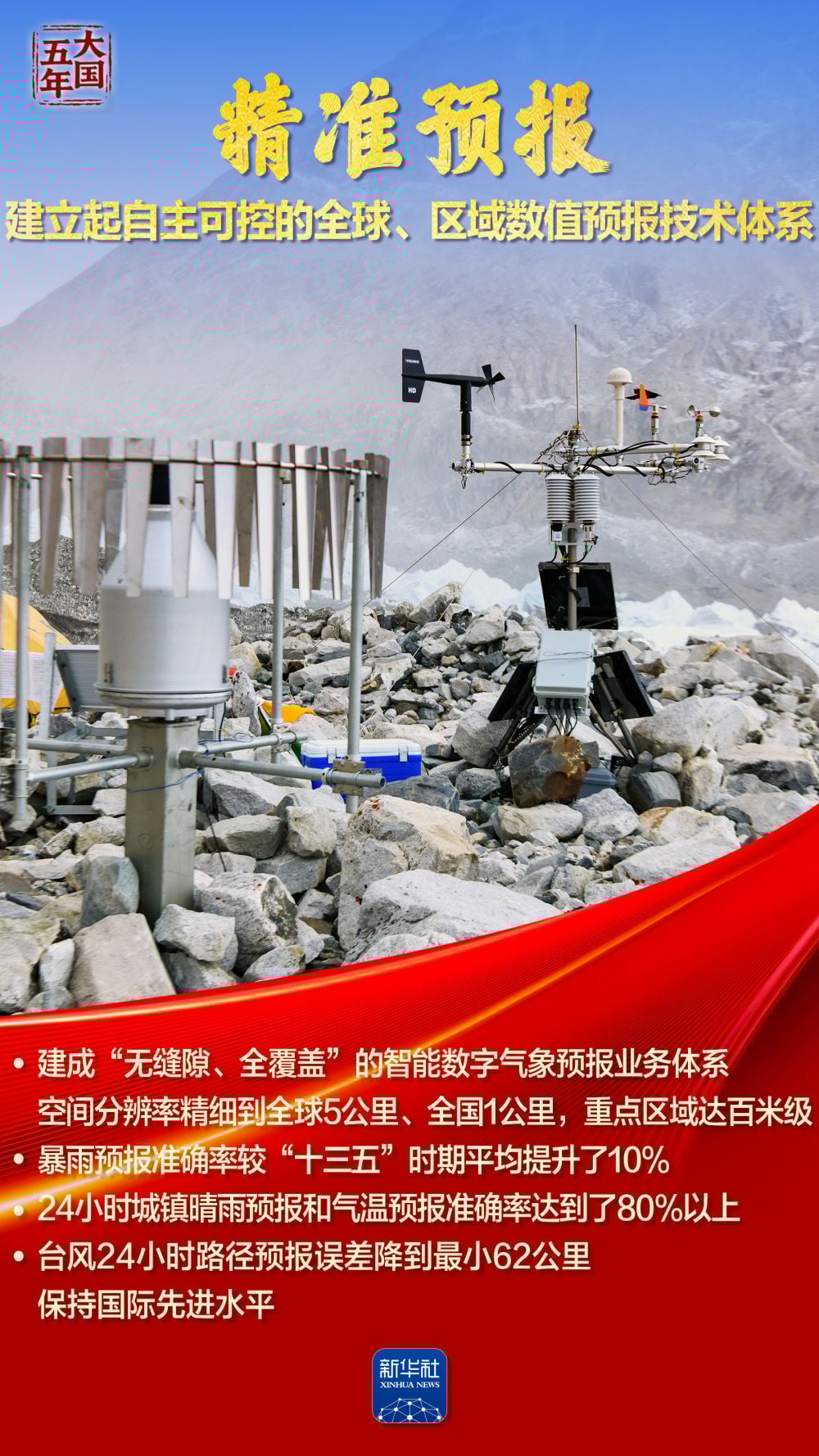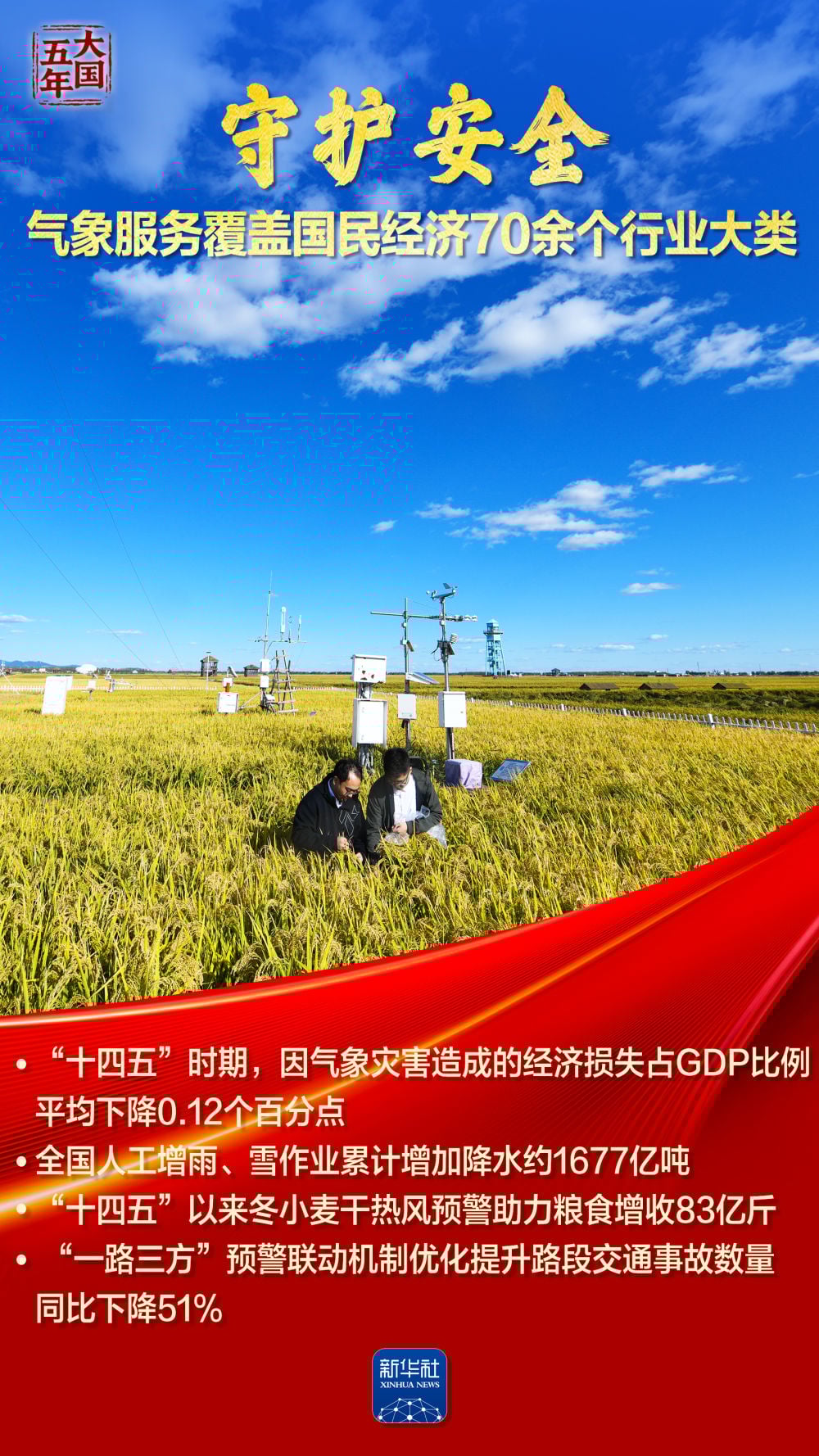 “风云”卫星俯瞰全球,筑就陆海空天一体化监测体系;人工智能预报精准至公里级,暴雨预警准确率再创新高;生活气象服务指数增至70余种,精细化气象服务涵盖衣食住行游购娱……“十四五”时期,从守护百姓衣食住行到助力国家发展大局,从筑牢国内生产生活安全防线到赋能产业升级,气象服务已成为满足民生期待、推动经济社会发展的重要支撑。