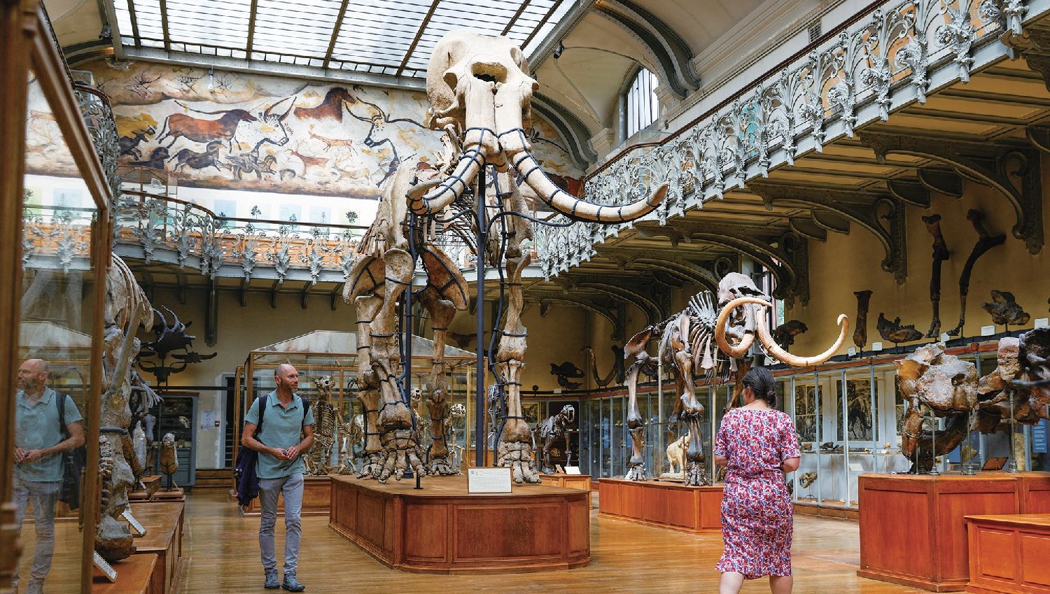 图为法国国家自然历史博物馆内部陈列的猛犸象骨架等展品。法新社图