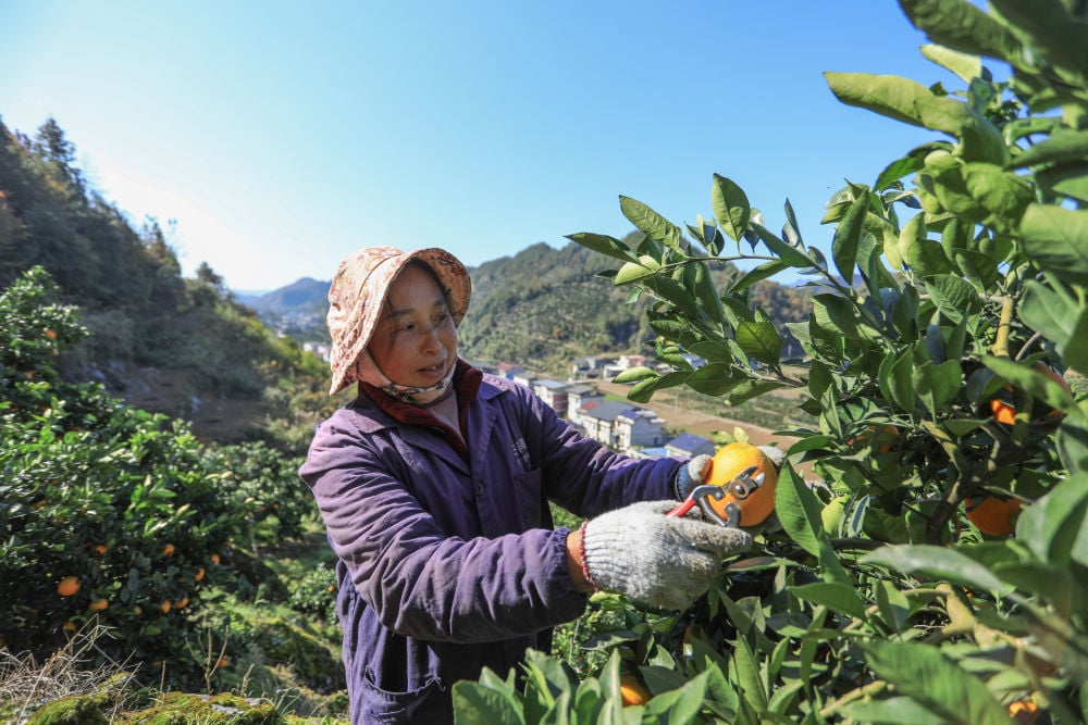 2025年11月19日,在重庆市秀山土家族苗族自治县洪安镇贵措社区,果农在采摘脐橙。新华社发(胡程摄)