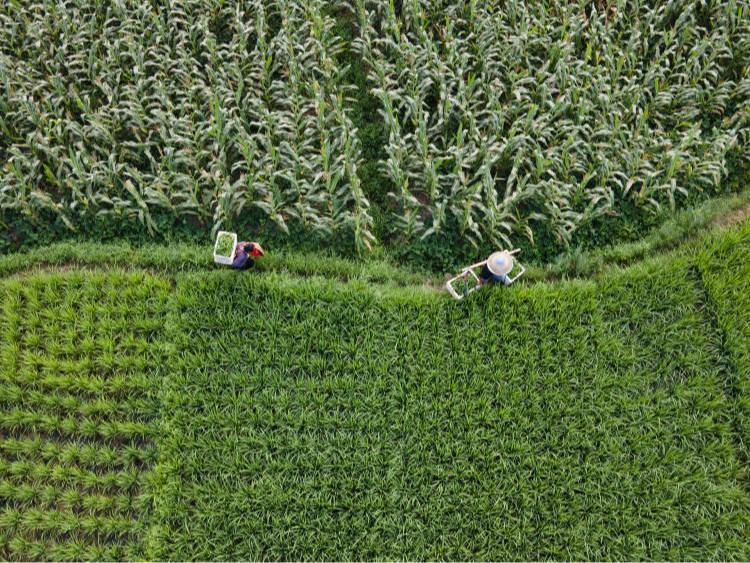 2022年7月7日,在重庆市秀山土家族苗族自治县溶溪镇柳水村,村民在搬运辣椒(无人机照片)。新华社发(胡程摄)