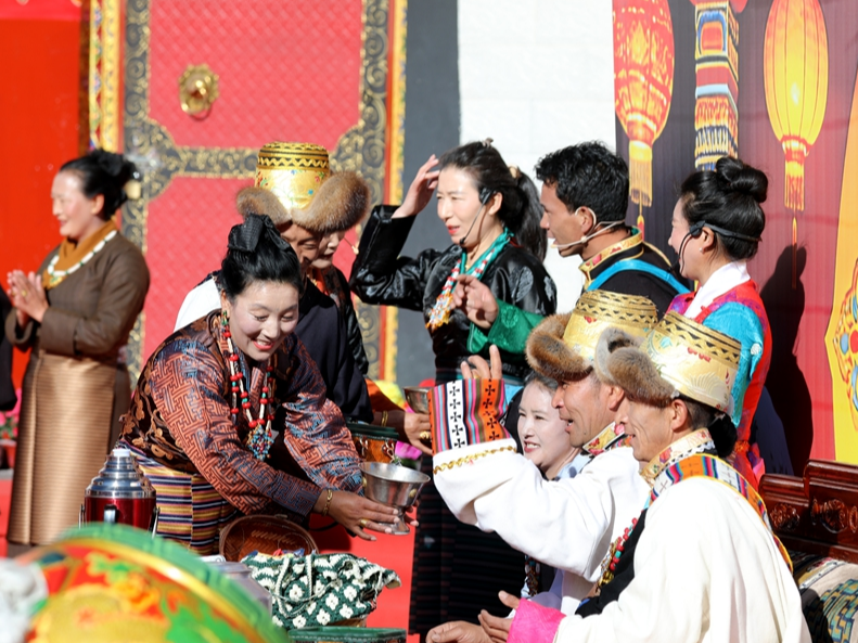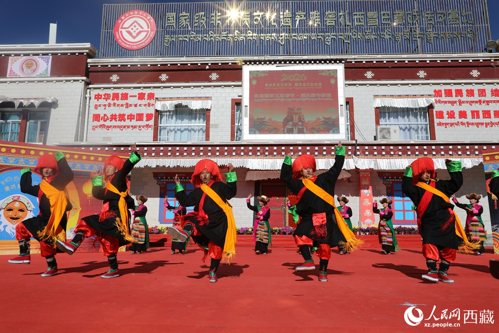 人民网拉萨2月7日电(记者吴雨仁)在春节与藏历新年来临之际,西藏山南市乃东区昌珠镇扎西曲登社区藏戏广场上人头攒动、笑语飞扬。一场以“青稞飘香迎新岁,藏源昌珠起新程”为主题的“村晚”热闹开演,各族群众身着节日盛装,在欢歌热舞中共迎新春。