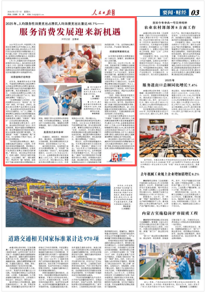 近年来,随着居民生活水平提升,中国居民消费结构从商品消费为主向商品消费和服务消费并重转变,服务消费日益成为经济高质量发展的重要引擎。商务部数据显示,2025年,人均服务性消费支出占居民人均消费支出的比重达到了46.1%,接近居民消费的“半壁江山”。