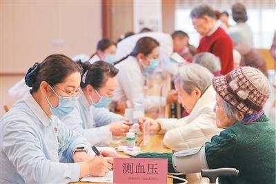 浙江省嘉兴市南湖区一家康养中心,医护人员为老人开展健康义诊活动。