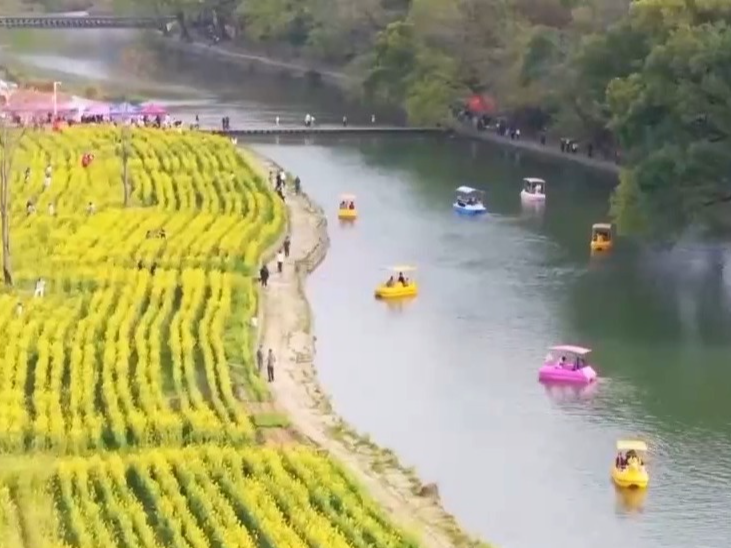 总台记者 鄢俊琪:江西上饶婺源的油菜花田里,金色花浪顺着农田铺展开来,也与远处的青山云雾相映成趣,勾勒出了一幅鲜活的春日画卷。和往年单纯的赏花观光不同,今年婺源县在传统赏花基础上,“以花为媒”解锁了一系列“赏花+新业态”的新玩法,把春日花海变成了可看、可玩、可吃、可体验的沉浸式游玩目的地。