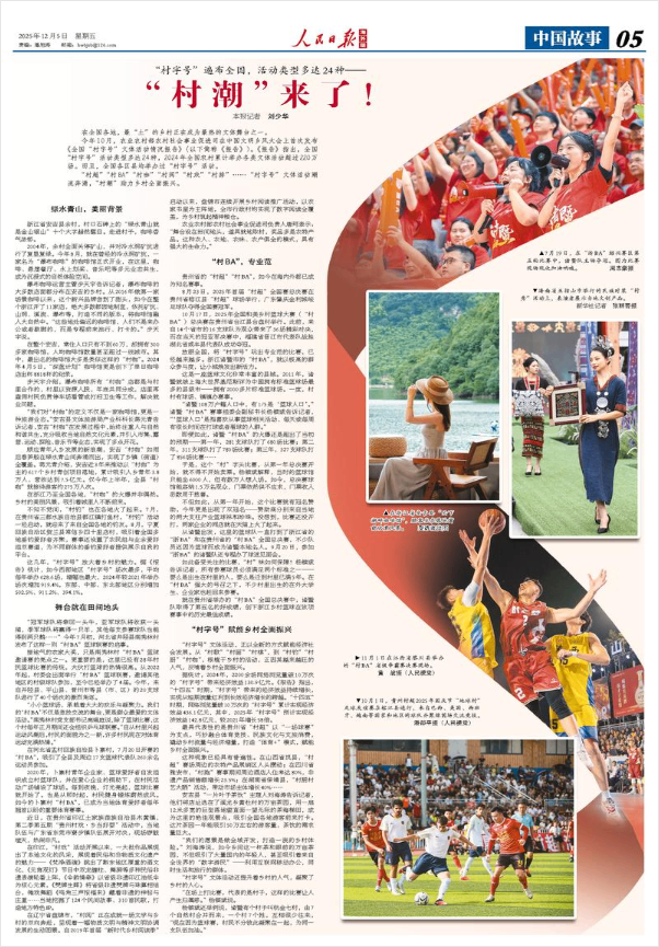 “村超”“村BA”“村咖”“村阅”“村戏”“村排”……“村字号”文体活动潮流奔涌,“村潮”助力乡村全面振兴。