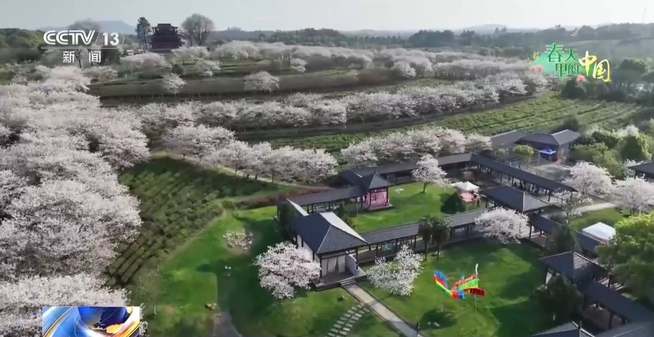 沿着绣球花海继续前行,景区千亩樱花迎来了进入观赏期。这里的樱花套种在漫山遍野的茶园中,层次分明,形成“远看是茶海,近看是花海”的独特景观。花枝轻垂在茶垄,花香混合着茶香在空中弥漫,沁人心脾。