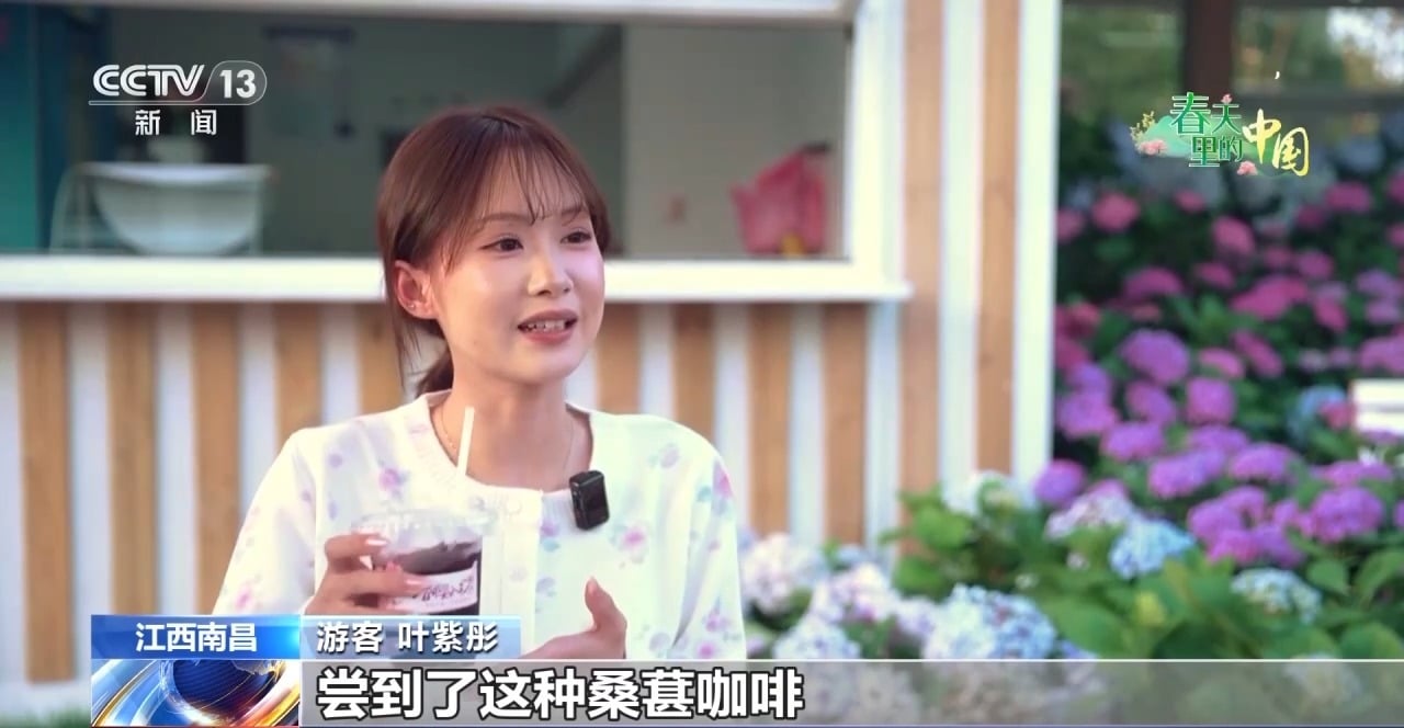 游客 叶紫彤:尝到了这种桑葚咖啡,还有桑叶冰激凌,都很美味,都是我们以前没有尝过的味道,我觉得很特别。