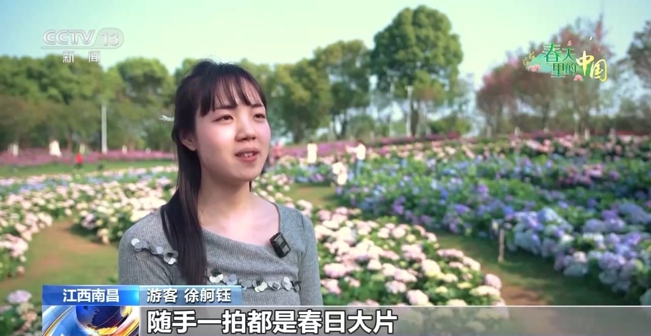 随着气温回升,江西南昌凤凰沟景区迎来清明出游高峰,景区内百亩绣球花清新绽放、千亩樱花浪漫盛开,两大花海相映成趣,人们来到这里亲近自然,尽情享受假期惬意时光。