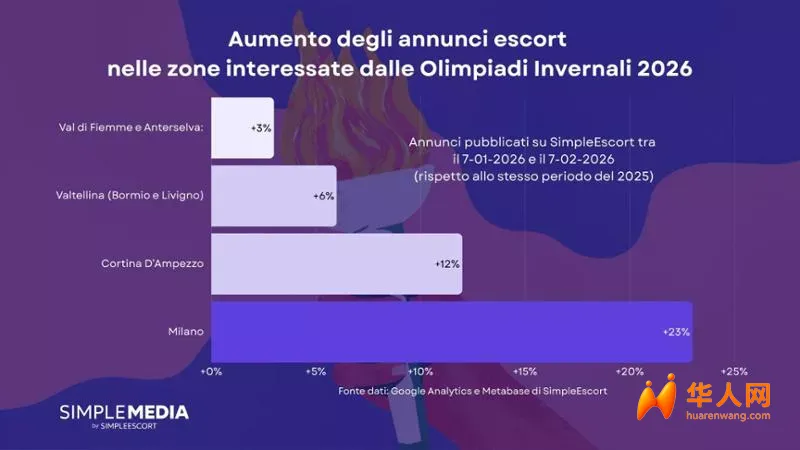 根据SimpleMedia基于SimpleEscort平台数据整理的报告,赛事开始后,米兰相关成人服务广告数量上涨23%,科尔蒂纳上涨12%,博尔米奥、利维尼奥所在的瓦尔泰利纳地区上涨6%,瓦尔迪菲耶梅和安特塞尔瓦上涨3%。业内人士认为,大型体育赛事往往不仅带来体育热度,也会带动夜生活和娱乐消费。