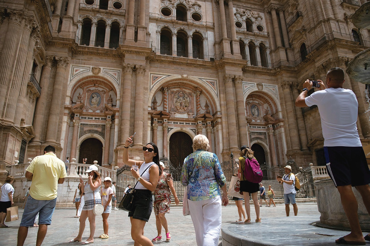 近期,国际三大评级机构接连上调西班牙的主权信用评级,肯定了该国经济的强劲表现。西班牙之所以能够保持良好的增长势头,主要得益于其相对年轻的人口结构、疫情后迅速复苏的旅游业,以及移民带动的劳动力市场扩张等因素。图为游客在马拉加大教堂前拍照留念。法新社图