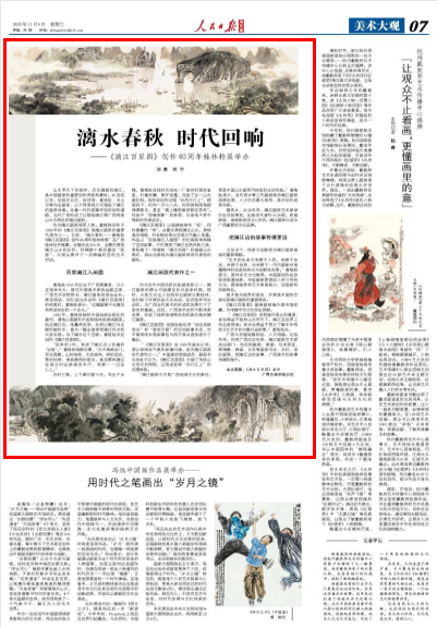“《漓江百里图》自1985年诞生以来,便以其恢宏气象和深邃内涵,成为漓江画派的代表作之一。”中国美协党组成员、副秘书长朱虹子认为,《漓江百里图》打破了传统山水范式的局限,让观者获得“舟行江上”的沉浸体验。
