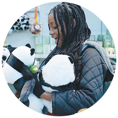 考察团成员艾斯特拉尔在中国大熊猫保护研究中心都江堰基地挑选纪念品。