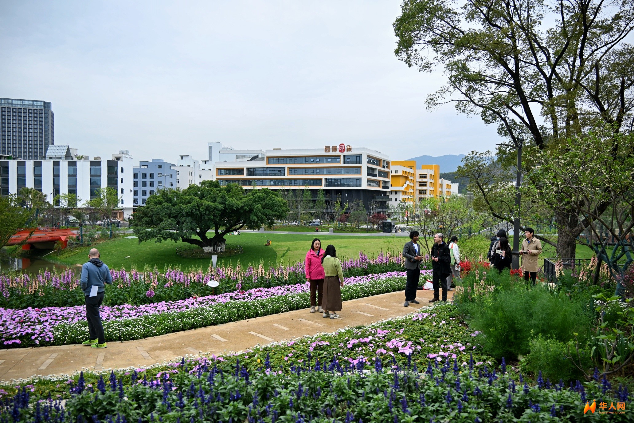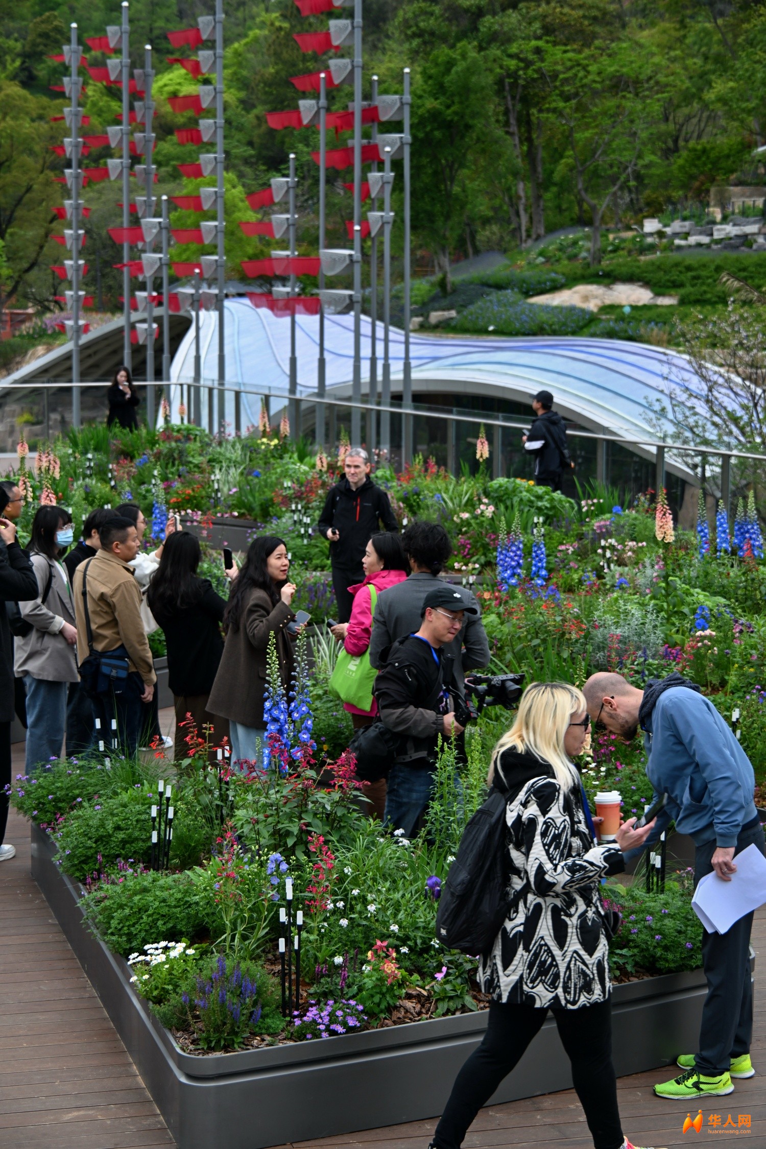 本届园博会首次落地浙江,主会场选址于温州南站核心区,占地面积近230万平方米。其独特的选址实现了“下高铁即入园”的便捷体验,将现代交通枢纽与传统山水意境无缝衔接。4月8日,在正式开园前夕,由外籍专家及意大利华人网、华人头条意大利站等海外媒体组成的采风团先行步入园区,深度探访这座集生态修复与文化交流于一体的园林殿堂。