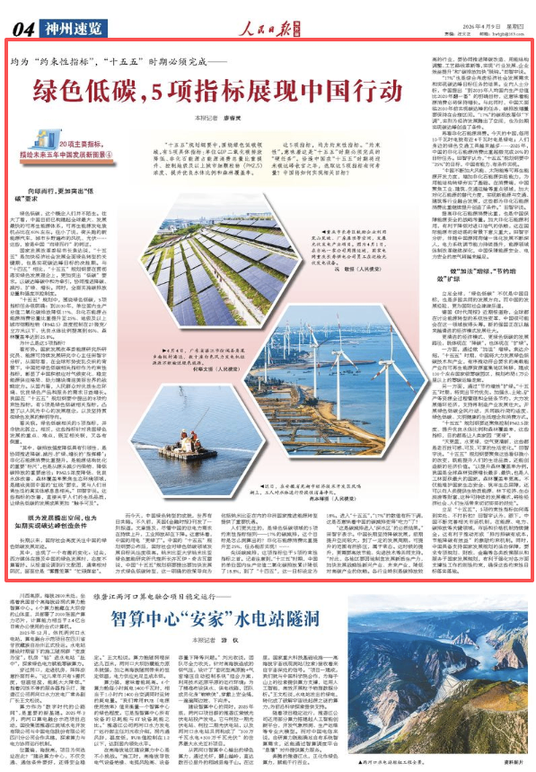 “其中,碳排放强度降低具有引领性,是协同推进降碳、减污、扩绿、增长的‘指挥棒’;非化石能源消费比重提升,是能源结构优化的重要‘标尺’,也是从源头减少污染物、降低碳排放的重要途径;PM2.5浓度降低、优良水体改善、森林覆盖率聚焦生态环境领域,是建设美丽中国的‘红线’要求,更与人们日常生活的真实体感息息相关。”田智宇说。这些指标的改善,直接关乎人们的生活品质,让绿色低碳的发展成果更加“触手可及”。