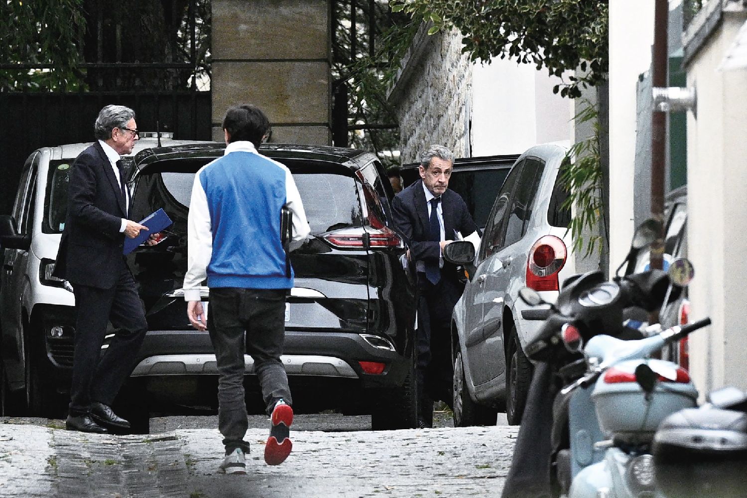10月13日,前总统萨科奇接受国家金融检察院传唤、得知入狱日期后,坐车返回住所。法新社图