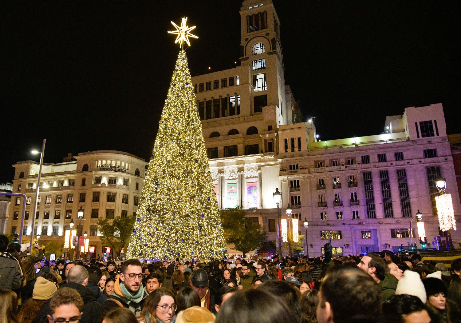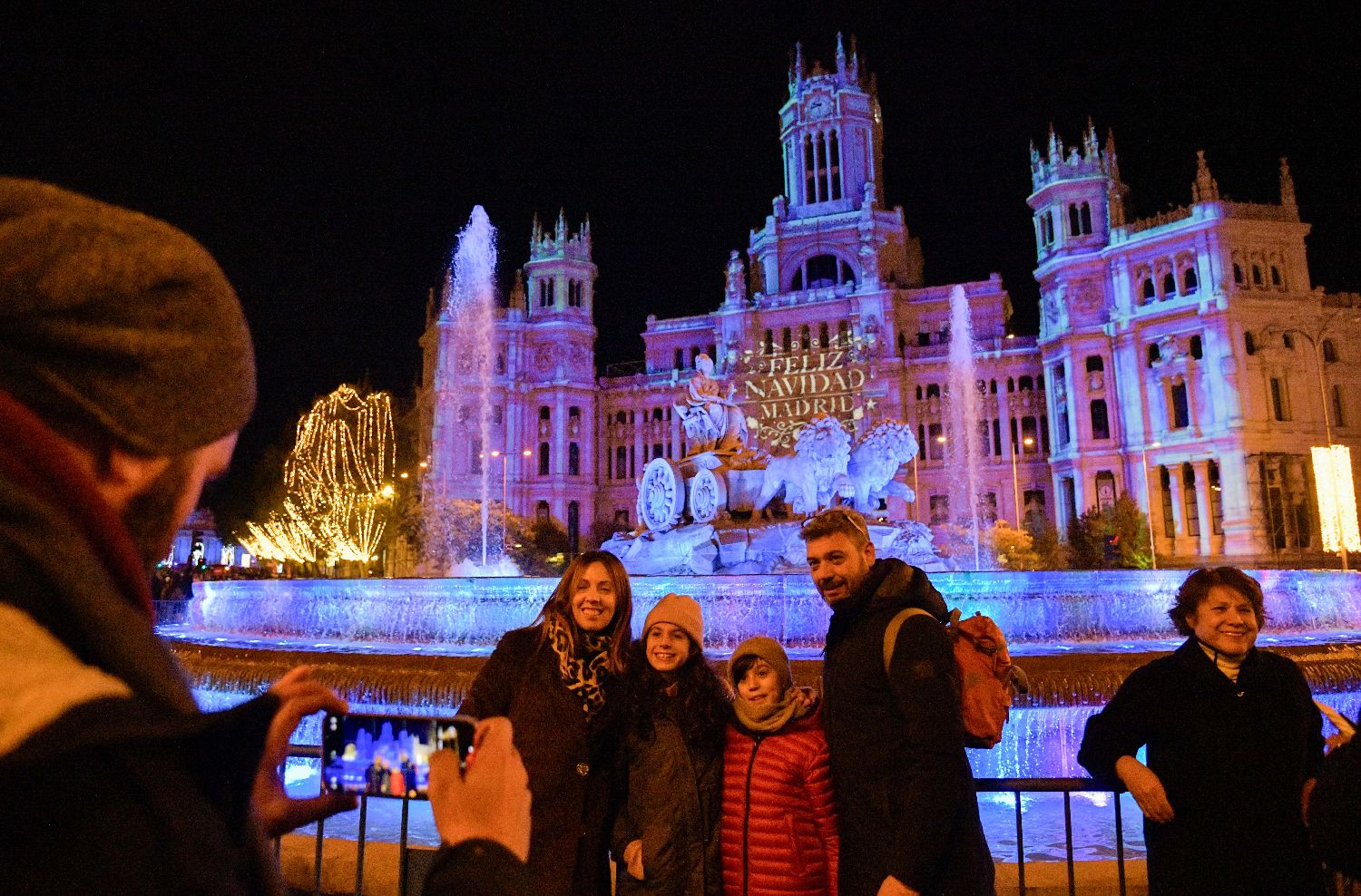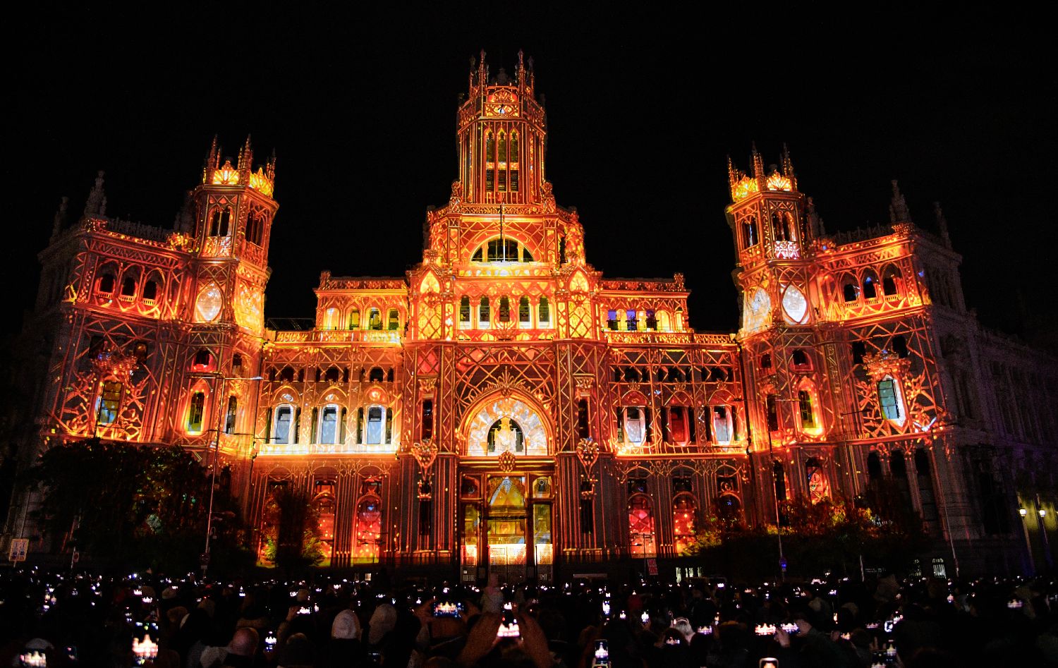 11月22日,西班牙马德里举行圣诞亮灯仪式,以一场在西贝莱斯宫举行的光影秀开场,点亮全城圣诞灯光。