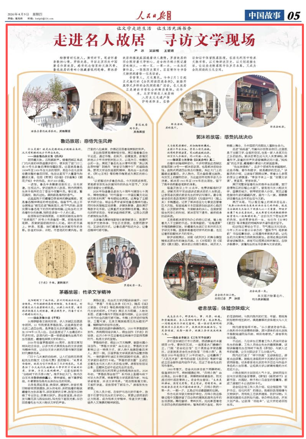 杨柳青时忆故人,清明时节,笔者怀着崇敬的心情,穿街走巷,寻访北京四处中国著名作家故居,感受纪念馆里的文脉风骨。鲁迅故居的青砖小院藏着锐利笔锋,郭沫若故居的雅致庭园透着诗人激情,茅盾故居的四合院存着文学初心,老舍的丹柿小院记着京味烟火。一砖一瓦、一草一木,一本本泛黄作品,一张张历史图片,巨匠情怀与书香文韵浸润着每一位来访者。