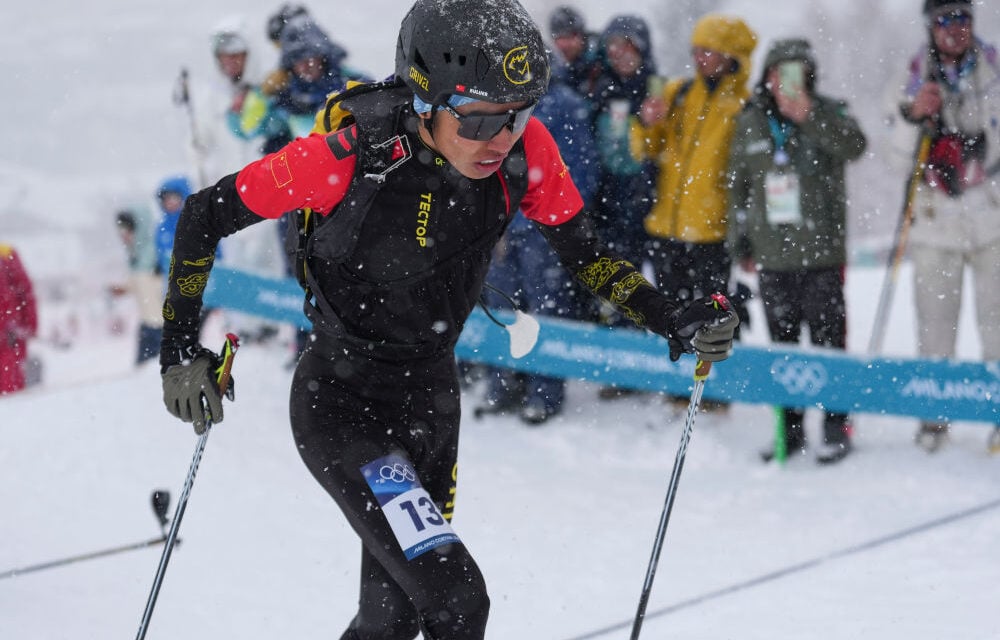 2026年2月21日,次旦玉珍在米兰-科尔蒂纳冬奥会滑雪登山混合接力的比赛中。新华社记者 颜麟蕴 摄